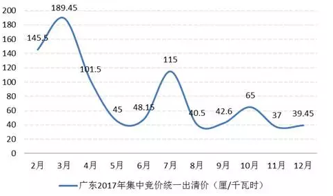 圖表七:廣東2017年集中競(jìng)價(jià)成交價(jià)格不斷收窄