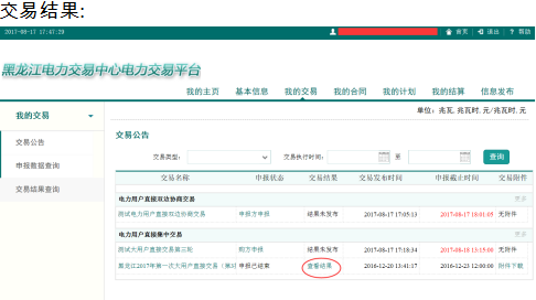 交易結(jié)果發(fā)布后,在首頁(yè)“待辦消息”或“我的交易”中查詢交易結(jié)果:
