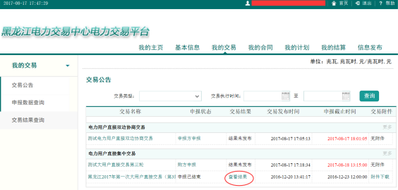 交易結(jié)果發(fā)布后,在首頁(yè)“待辦消息”或“我的交易”中查詢(xún)交易結(jié)果: