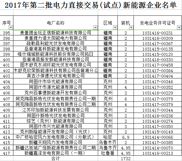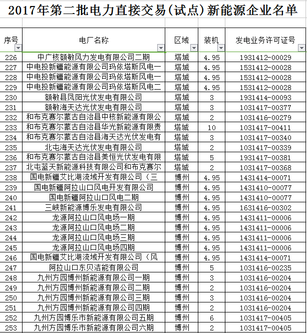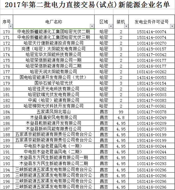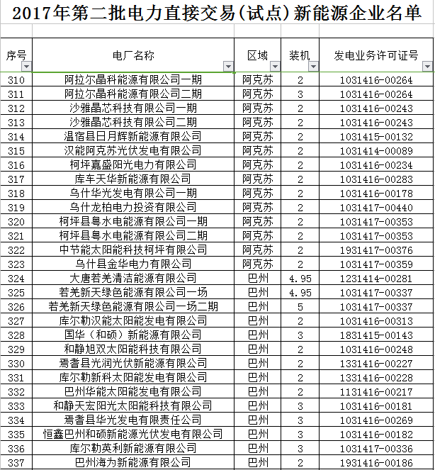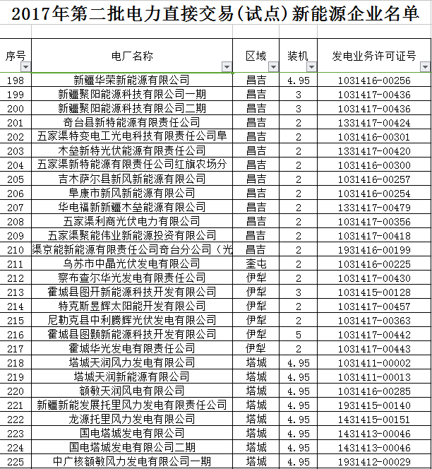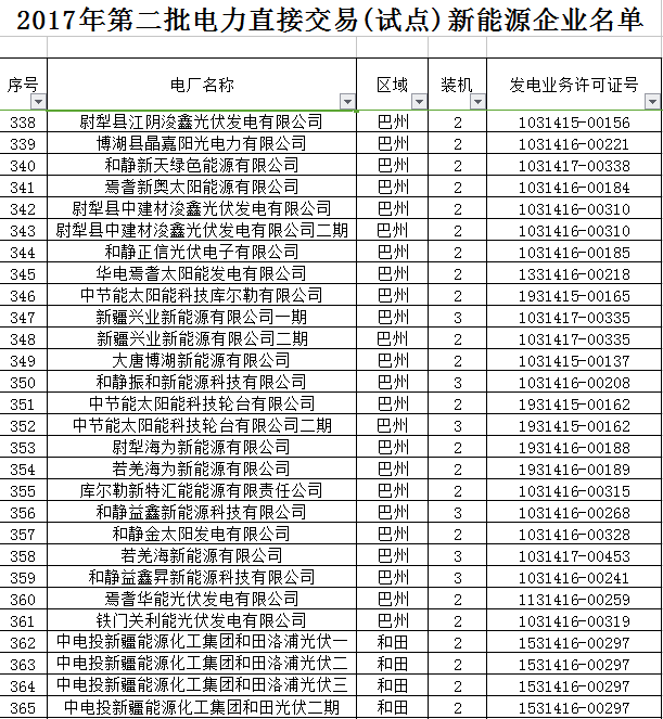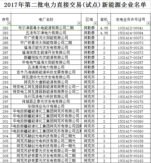 新疆第二批發(fā)電企業(yè)與電力用戶直接交易(試點(diǎn))電力用戶、售電公司及發(fā)電企業(yè)公示名單