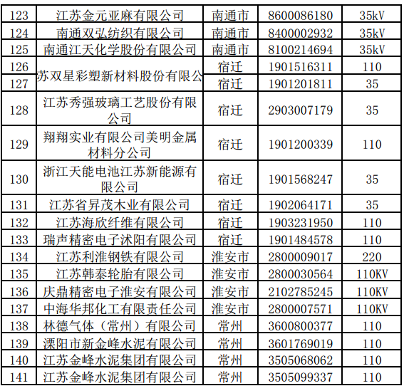 2017年11、12月江蘇競價交易用戶準入清單(附名單)