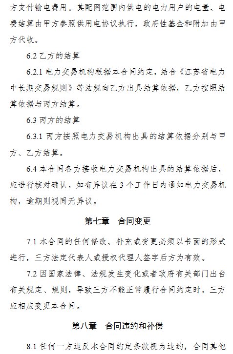 江蘇印發(fā)《江蘇電力直接交易三方合同(示范文本)》的通知