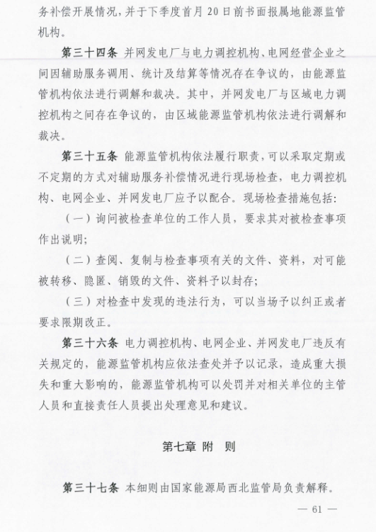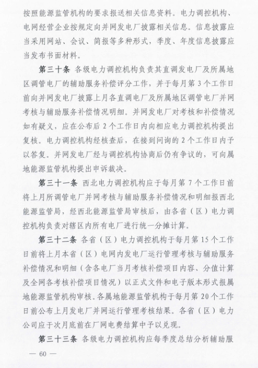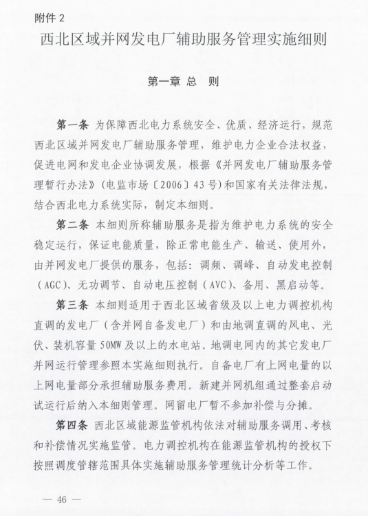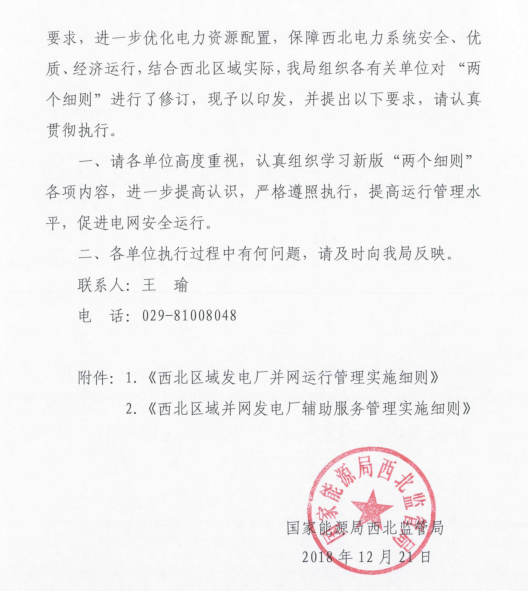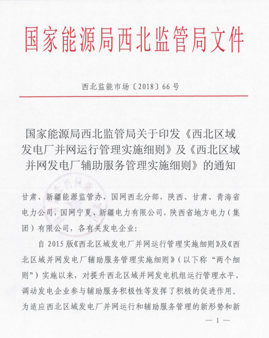 國家能源局西北監(jiān)管局印發(fā)了《西北區(qū)域發(fā)電廠并網(wǎng)運行管理實施細則》及《西北區(qū)域并網(wǎng)發(fā)電廠輔助服務管理實施細則》