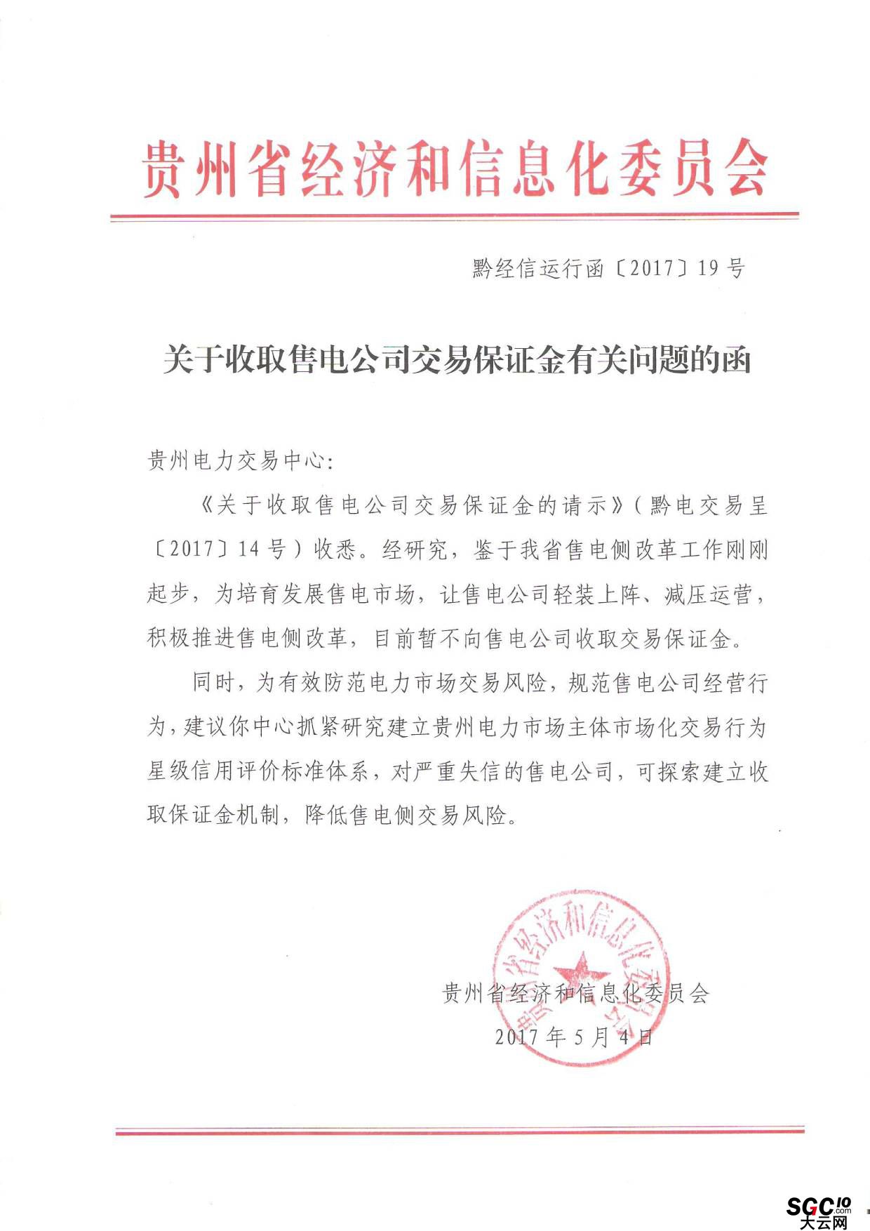 5月4日,貴州省經(jīng)信委回復(fù)貴州交易中心關(guān)于收取售電公司交易保證金有關(guān)問(wèn)題的函,在復(fù)函中經(jīng)信委研究決定暫不向售電公司收取交易保證金。