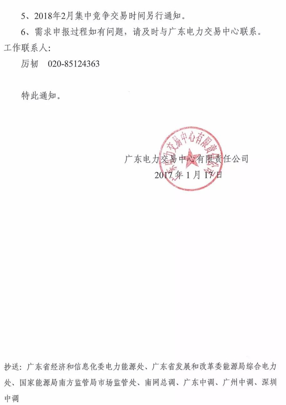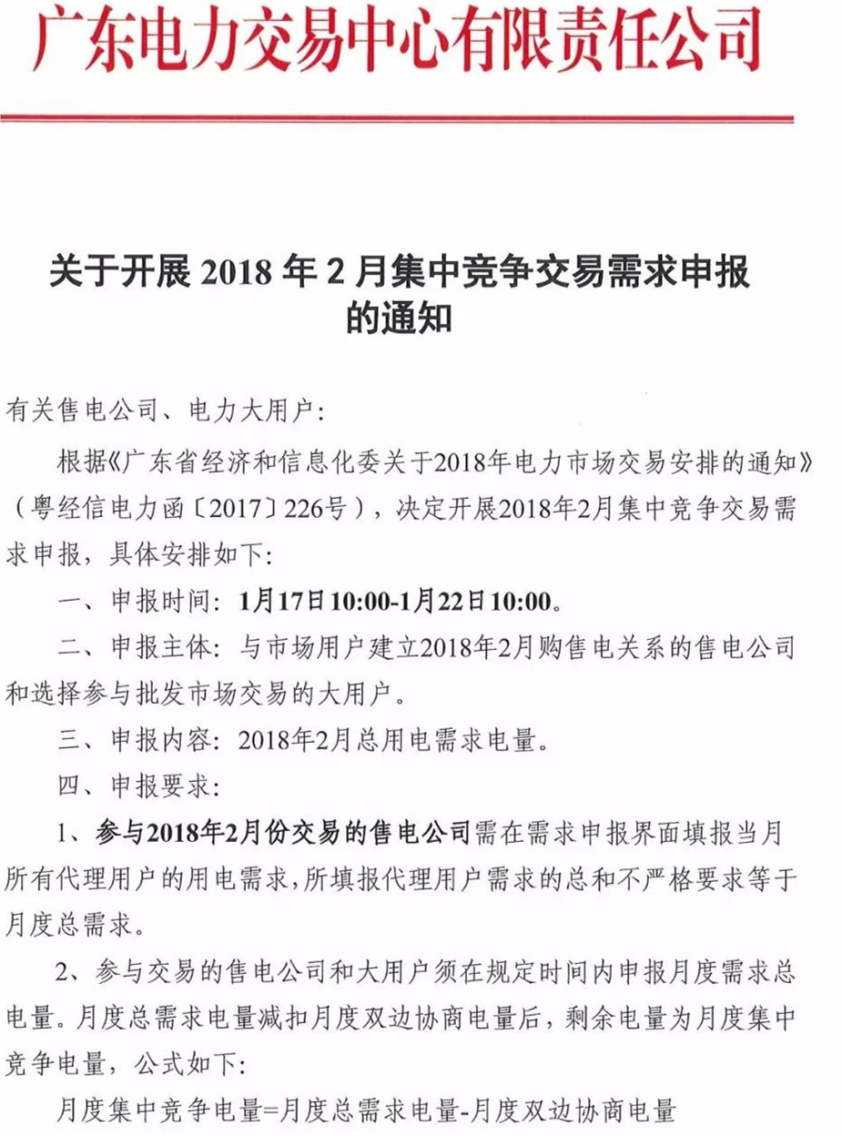 廣東開(kāi)展2018年2月集中競(jìng)爭(zhēng)交易需求申報(bào)工作