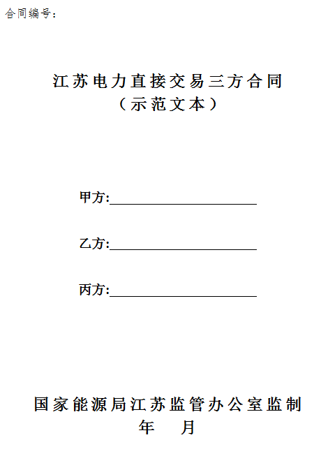 關(guān)于印發(fā)《江蘇電力直接交易三方合同(示范文本)》的通知