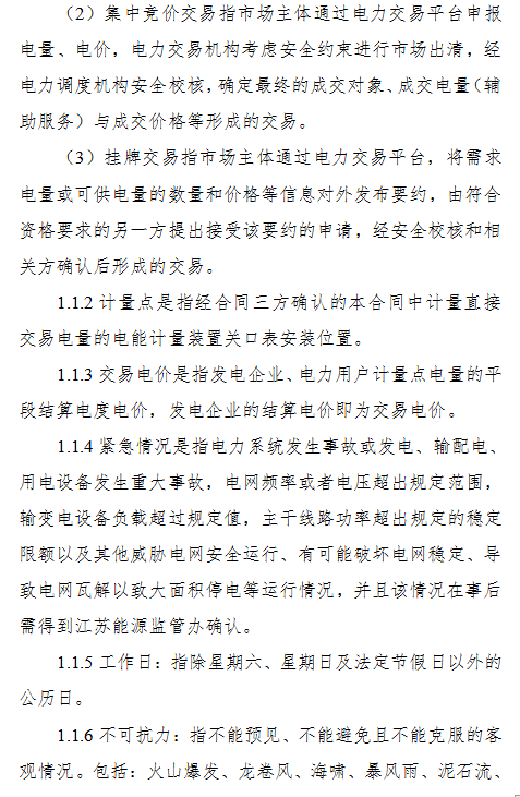 國家能源局江蘇監(jiān)管辦《日前發(fā)布了江蘇電力直接交易三方合同(示范文本)》,詳情如下: