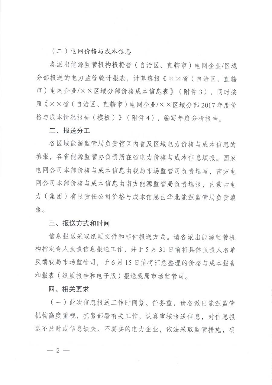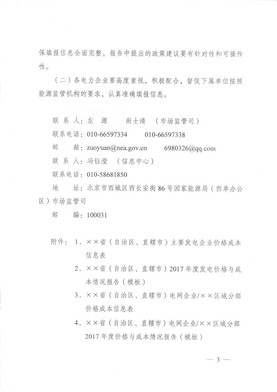 國家能源局日前發(fā)布了《關于報送2017年度電力價格與成本信息的通知》。通知中稱,為全面準確反映全國各地電力價格、成本信息及變化情況,更好地實施價格與成本監(jiān)管,切實維護好電力市場秩序,決定開展2017年度電力價格與成本信息報送工作。