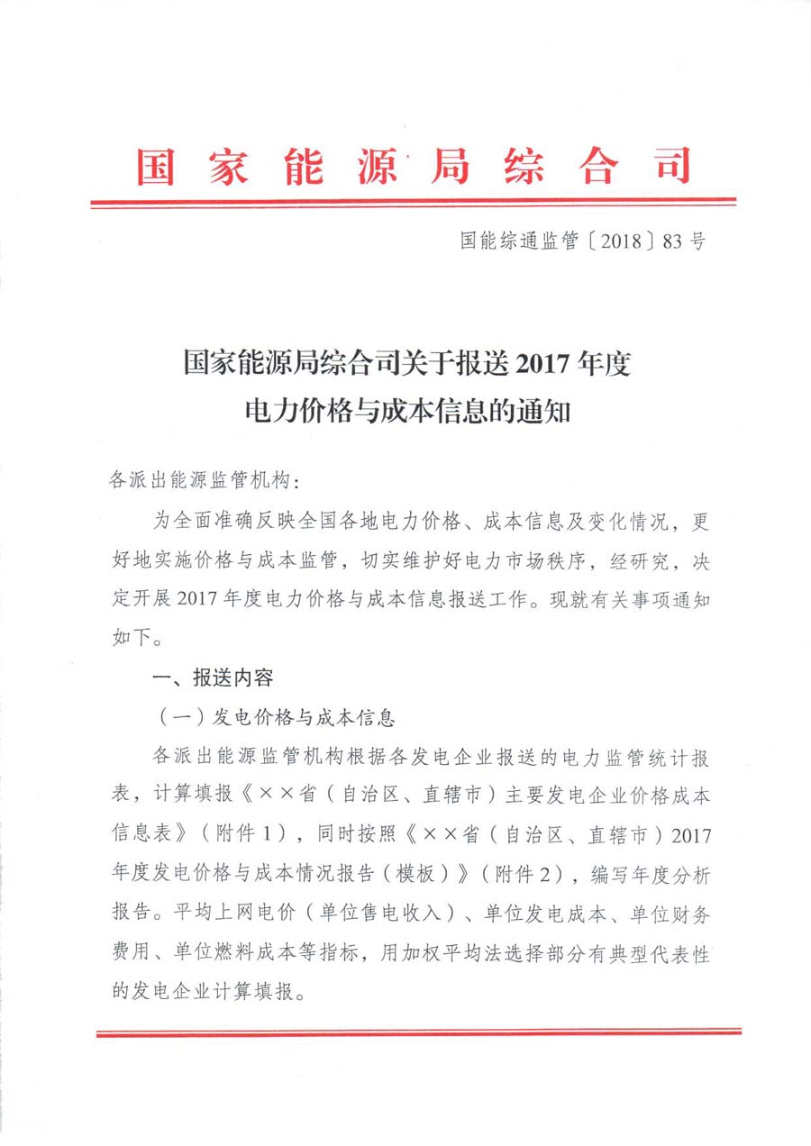 國家能源局日前發(fā)布了《關于報送2017年度電力價格與成本信息的通知》。通知中稱,為全面準確反映全國各地電力價格、成本信息及變化情況,更