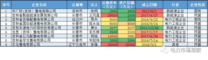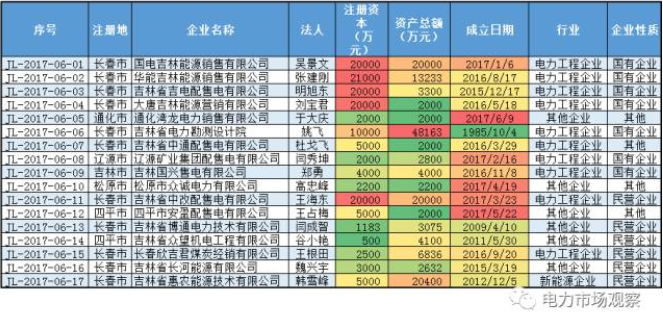 7月7日、8月3日,吉林省公示了26家售電公司,其中包括一家跨省售電公司。下面,小編為你分析一下吉林這兩批共26家售電公司的分布情況。7月7日,吉林省首批17家售電公司公示,見下表:8月3日,吉林省第二批9家售電