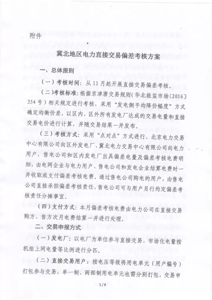 我們把已經(jīng)印發(fā)《冀北地區(qū)電力直接交易偏差考核方案》中的重點(diǎn)規(guī)定摘錄如下: