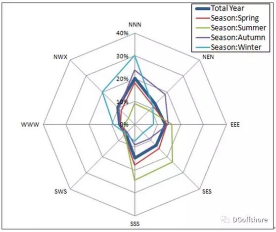 Y2海域全年和分季節(jié)波向分布是這樣的: