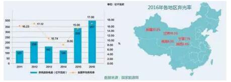 圖2 2016年全國主要地區(qū)棄風、棄光情況