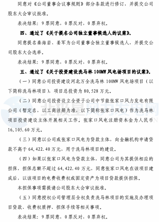 節(jié)能風電三連擊:注冊資本變更、提名獨董、投建100MW風電項目