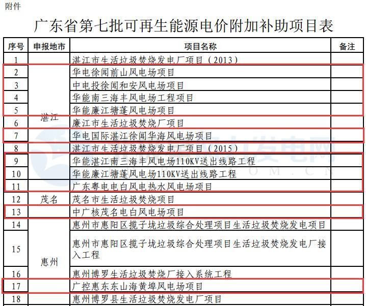 附件:廣東省第七批可再生能源電價(jià)附加補(bǔ)助項(xiàng)目表