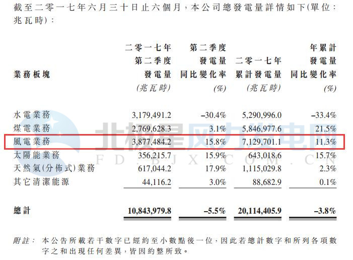 華電福新2017年前6個(gè)月完成發(fā)電量20,114,405.9兆瓦時(shí), 同比降低3.8%,其中風(fēng)電發(fā)電量為5,846,977.6兆瓦時(shí),同比增加11.3%。以下為具體發(fā)電量數(shù)據(jù):