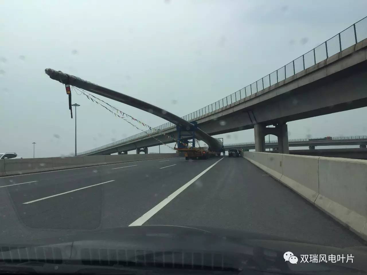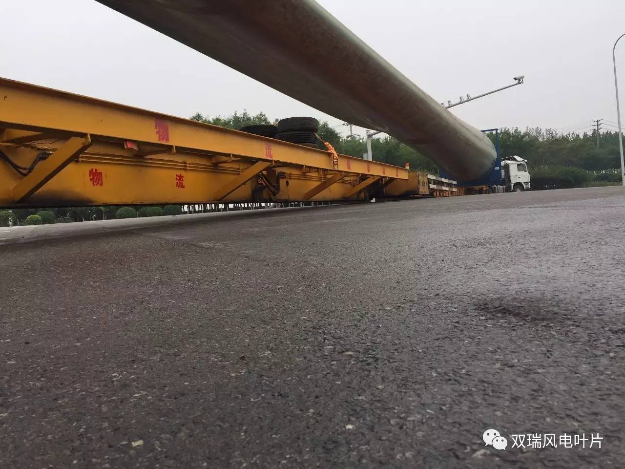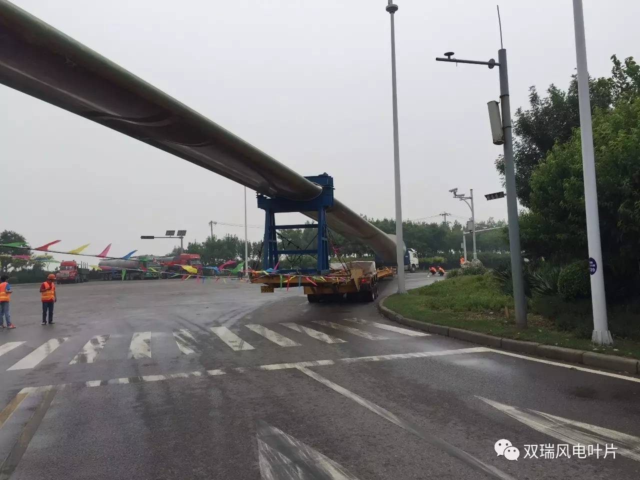 雙瑞風(fēng)電5MW首支葉片成功下線后,于6月13日出發(fā),歷經(jīng)11個(gè)日日夜夜和水路、陸路總計(jì)1700公里的行程,在6月24日凌晨到達(dá)風(fēng)能檢測(cè)中心。