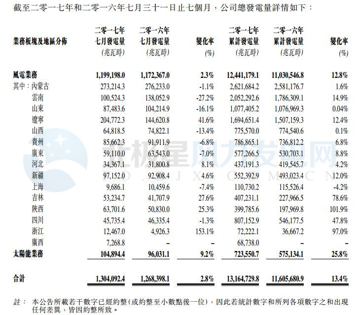 華能新能源今年7月風(fēng)電發(fā)電量達(dá)1199198兆瓦時,同比增長2 3%。以下為具體情況: