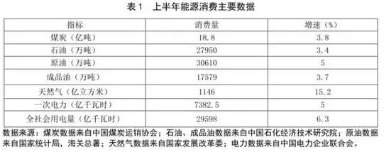 上半年,我國能源消費超預期增長。能源生產增速有顯著提高,能源進口仍保持高速增長態(tài)勢。從能源消費增速看,經濟總體向好趨勢更加明顯,全社會用電量同比增長6.3%,增速較去年全年(5.0%)提高1.3個百分點。預計全年GDP增速6.8%,能源消費總量44.5億噸標準煤左右,比預期增加5000萬噸。