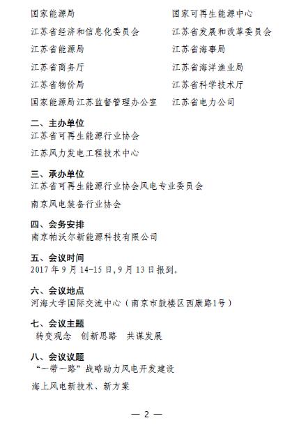 第十屆中國(guó)(江蘇)國(guó)際風(fēng)電產(chǎn)業(yè)發(fā)展高峰論壇將于9月14-15日在江蘇南京召開(kāi)