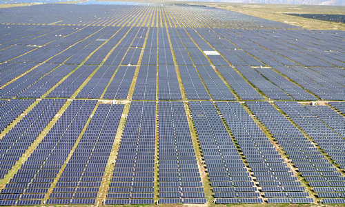 資料圖片:位于青海省海南藏族自治州共和縣境內(nèi)的光伏產(chǎn)業(yè)園一角。新華社記者 張宏祥 攝