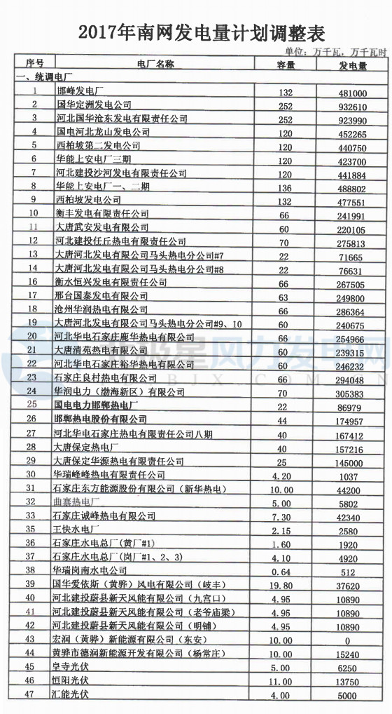 河北省發(fā)改委調(diào)整河北南網(wǎng)2017年發(fā)電量計劃:涉及4家風(fēng)電廠 發(fā)電量7.03億千瓦時(附通知)
