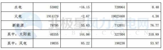 (一)發(fā)電量情況。9月份當(dāng)月,全省發(fā)電量204.78億千瓦時(shí),同比減少1.65%。其中水電5.38億千瓦時(shí),同比減少16.15%;火電191.42億千瓦時(shí),同比減少2.67%;新能源7.98億千瓦時(shí),同比增長(zhǎng)55.63%。