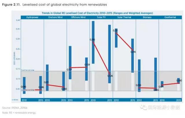 【數(shù)據(jù)】2010-2015年各類可再生能源成本走向