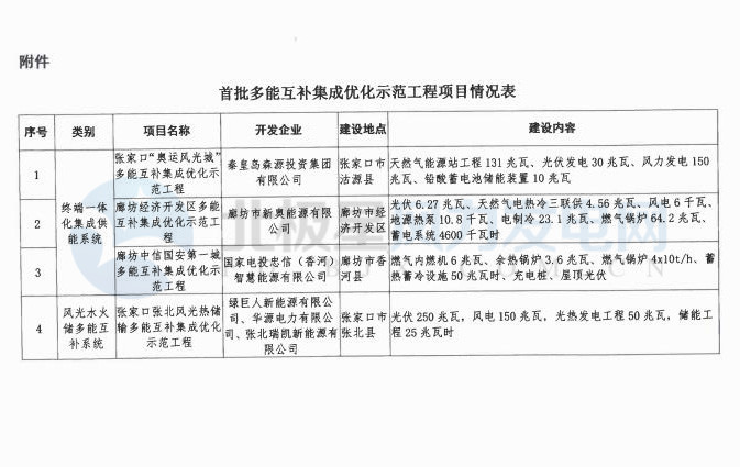 附件:首批多能互補集成優(yōu)化示范工程項目情況表