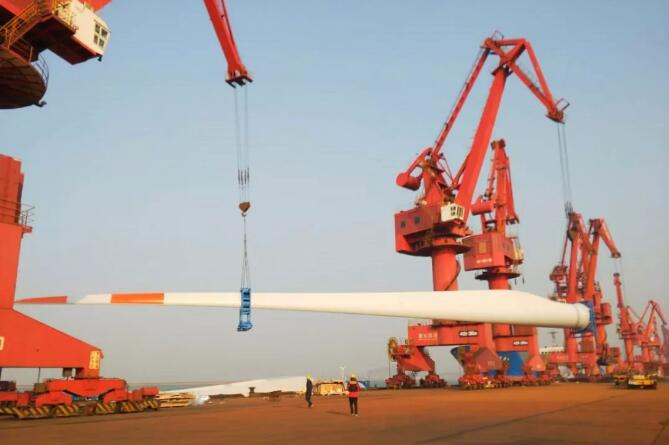 2017年12月24日,由中復(fù)連眾自主研發(fā)制造的LZ68-4.X-V2首套海上風(fēng)機(jī)葉片,從連云港港口順利發(fā)運(yùn)至江蘇龍?jiān)词Y家沙海上風(fēng)場(chǎng)。