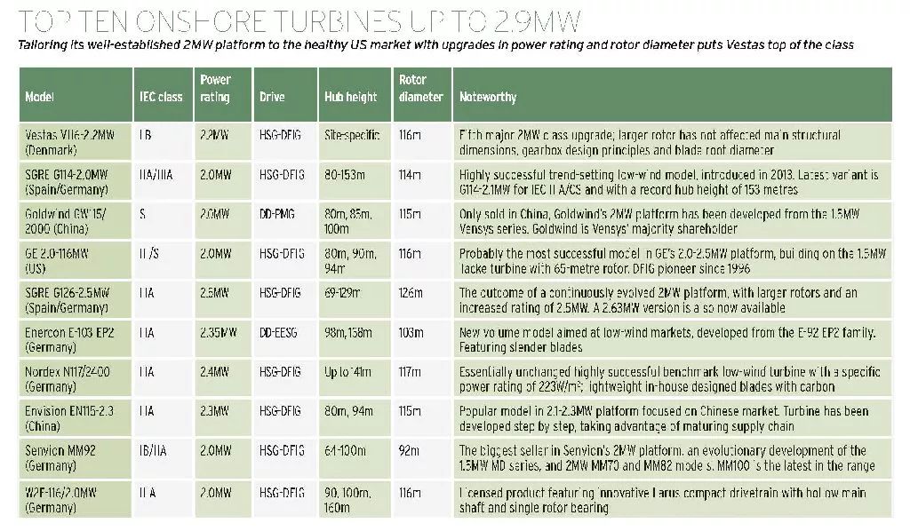 2017年末,Windpower Monthly啟動了一年一度的最佳風電機組評選。根據(jù)單機功率和應用的不同評選出了最佳陸上風電機組(2 9兆瓦以下), 最