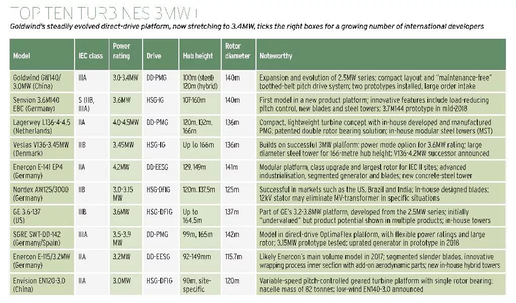 【榜單 】 3家中國風電企業(yè)上榜2017年度全球最佳風機!