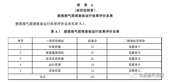 中華人民共和國(guó)國(guó)家質(zhì)量監(jiān)督檢驗(yàn)檢疫總局、中國(guó)國(guó)家標(biāo)準(zhǔn)化管理委員會(huì)發(fā)布《燃煤煙氣脫硝裝備運(yùn)行效果評(píng)價(jià)技術(shù)要求 GB T 34340-2017 》。根據(jù)標(biāo)準(zhǔn)要求,燃煤煙氣脫硝裝置運(yùn)行效果評(píng)價(jià)總分為100分,其中,環(huán)保性
