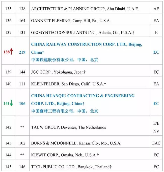 日前,全球工程建設領(lǐng)域最權(quán)威的學術(shù)雜志——美國《工程新聞紀錄》(ENR)雜志公布了2017年度國際225強工程設計企業(yè)排名。中國電建排名第17位,繼續(xù)在中企中位列第一;中國能建排名第29位,在中企位列第二。(本