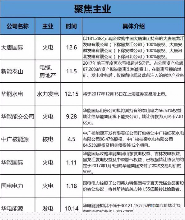 但實(shí)際上,國(guó)家能投并非2017年唯一的電力央企調(diào)整案例,在這一年里,五大四小重組、并購(gòu)、資產(chǎn)轉(zhuǎn)讓事件接連不斷,聚焦主業(yè)、資產(chǎn)結(jié)構(gòu)優(yōu)化成為主旋律。其實(shí),早在2016年5月份原國(guó)資委副主任張喜武就曾表示,央企主業(yè)不突出、投資分散、同質(zhì)化經(jīng)營(yíng),大而全、小而全的問(wèn)題比較突出,該退的沒(méi)有退出,該集中的沒(méi)有集中,結(jié)構(gòu)調(diào)整的任務(wù)艱巨繁重。