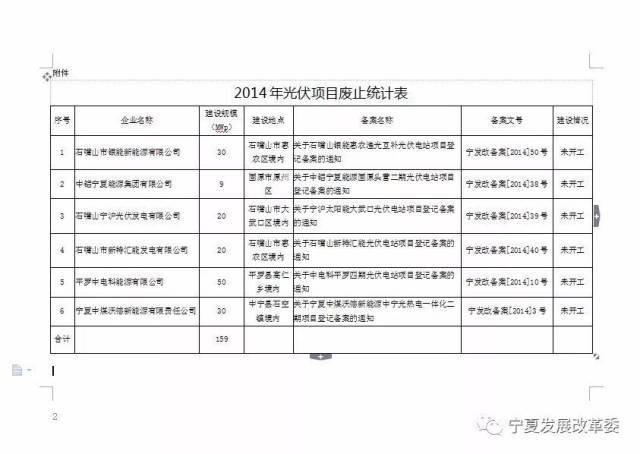 日前,寧夏發(fā)改委發(fā)布公告廢止6個截止10月底尚未開工的光伏項目,總規(guī)模共計15.9萬千瓦,上述項目都是于2014年備案的項目。