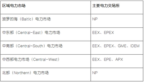 表1歐洲區(qū)域電力市場(chǎng)的主要電力交易所