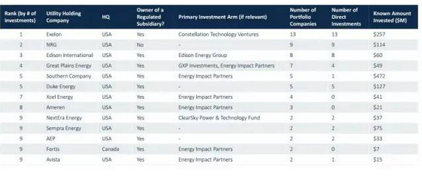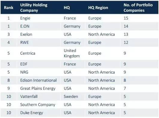 下表羅列了排名前十的投資分布式能源企業(yè)的歐美地區(qū)集團。投資的企業(yè)包括光伏公司、其他分布式能源公司、儲能公司、提供能源管理方案的公司、分布式能源系統(tǒng)集成公司等。