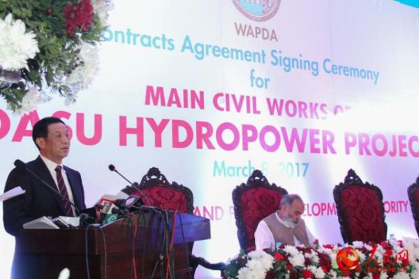 中國葛洲壩集團股份有限公司(簡稱葛洲壩集團)8日在巴基斯坦首都伊斯蘭堡同巴水電開發(fā)署舉行了達蘇水電站主體工程建設(shè)協(xié)議簽約儀式。巴基斯坦國防部長兼水資源和電力部長赫瓦賈·阿西夫、葛洲壩集團副總經(jīng)理鄧銀