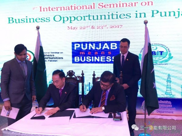 5月23日,在巴基斯坦第二屆國際商機研討會上,三一集團與巴基斯坦旁遮普省電力開發(fā)委員會正式簽署了《PPDB備忘錄》,雙方就新能源領(lǐng)域展開合作達成共識。旁遮普省首席部長謝里夫、三一集團董事易小剛出席了簽約儀式。