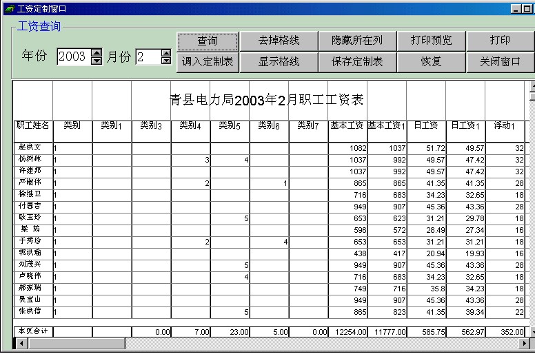 第三,對(duì)傳入Oracle的工資表進(jìn)行“定制”,即將光標(biāo)放置于需隱藏的列,通過(guò)“隱藏所在列”按鈕實(shí)現(xiàn)過(guò)濾掉無(wú)用的字段(由專職財(cái)務(wù)人員操作,實(shí)際是在“工資項(xiàng)顯示屬性表”中將該月的該列字段置0),剩下需要的字段,然后將信息存儲(chǔ),此界面如圖2。