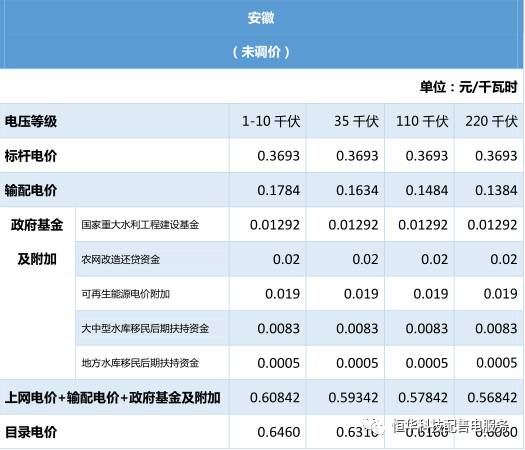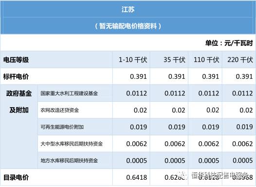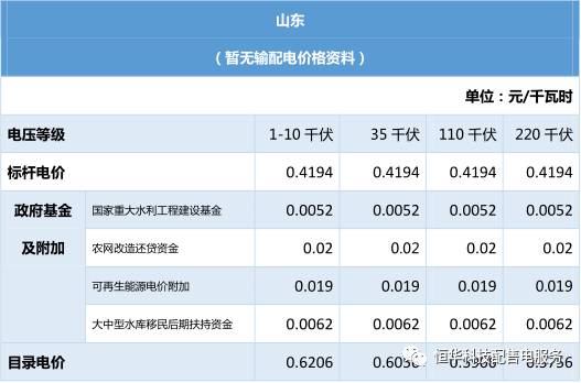 全國(guó)各省電價(jià)匯總之華北、華東、東北區(qū)域
