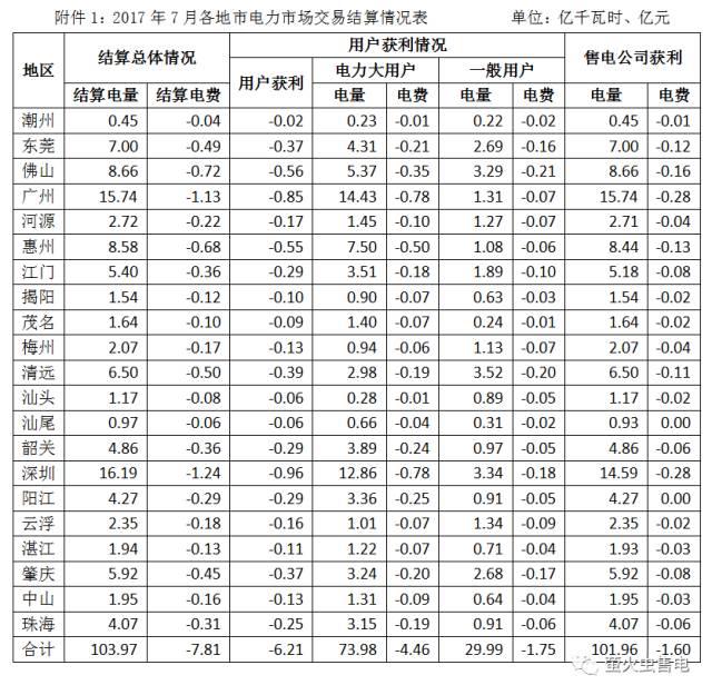 廣東電力交易中心發(fā)布了《關于2017年7月份廣東電力市場結(jié)算情況的通告》,相關內(nèi)容如下:1整體情況7月共有60家電廠(共69個交易單元)、8家大用戶、123家售電公司參與批發(fā)市場交易。全市場計劃用電量 104 20 億千