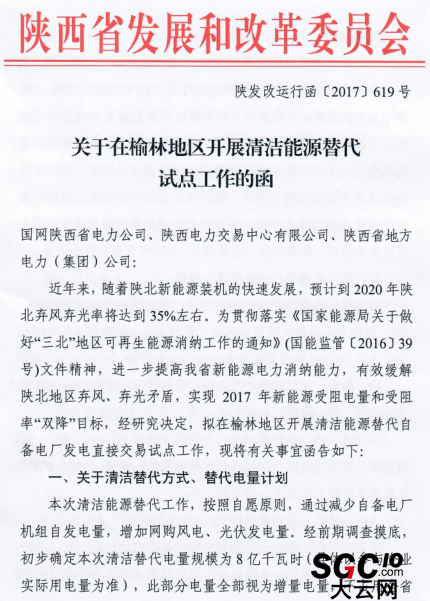 陜西:規(guī)模8億千瓦時 開展榆北地區(qū)清潔能源替代直接交易試點