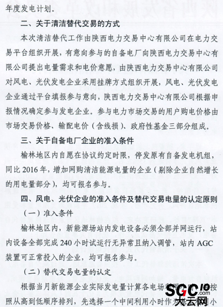 陜西省發(fā)改委日前發(fā)布了《關(guān)于在榆北地區(qū)開展清潔能源替代試點工作的函》,文件中指出,在榆林地區(qū)開展清潔能源替代自備電廠發(fā)電直接交易試點,本次清潔替代電量規(guī)模為8億千瓦時,此部分電量全部視為增量電量,不