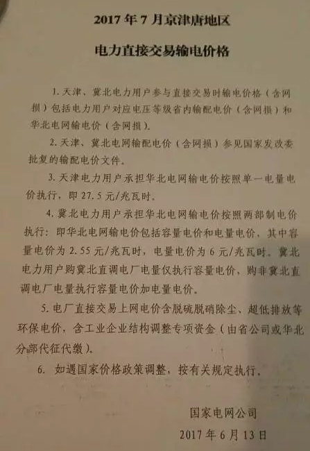 津京唐交易預(yù)公告出來以后就有無數(shù)人問過我們?nèi)A北電網(wǎng)輸電價(jià)出來了沒有?什么時(shí)候出?嘿嘿嘿,現(xiàn)在晶見工作室來告訴你2017年7月京津唐地區(qū)電力直接交易的華北電網(wǎng)輸電價(jià)格。