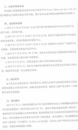 值得注意的是,通知中對西安北方惠安化學(xué)工業(yè)有限公司、陜西寶光真空電器股份有限公司實際結(jié)算電量低于合同電量80%,根據(jù)違約責任處罰,這兩家電力用戶三季度的交易資格被取消。