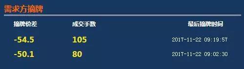 時(shí)間9:20~10:15分,盤上需求方摘牌情況一直保持不變,供需雙方一直在等待更好的價(jià)格出現(xiàn)。