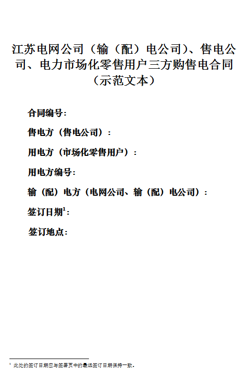 江蘇能源監(jiān)管辦印發(fā)兩個(gè)電力市場(chǎng)化交易合同示范文本