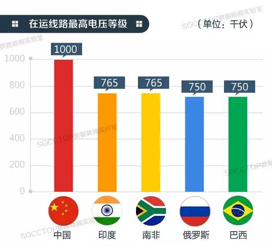 電力發(fā)展水平跟電壓等級有一定的關系,金磚五國的電網最高電壓等級普遍較高,部分國家的電壓甚至還是全球最高的!